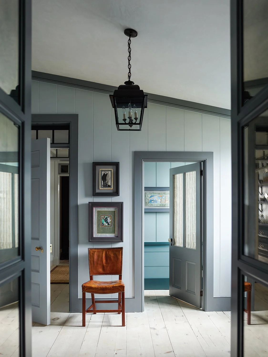 A design by Steven Gambrel which implements a tonal selection of cool blues and off whites