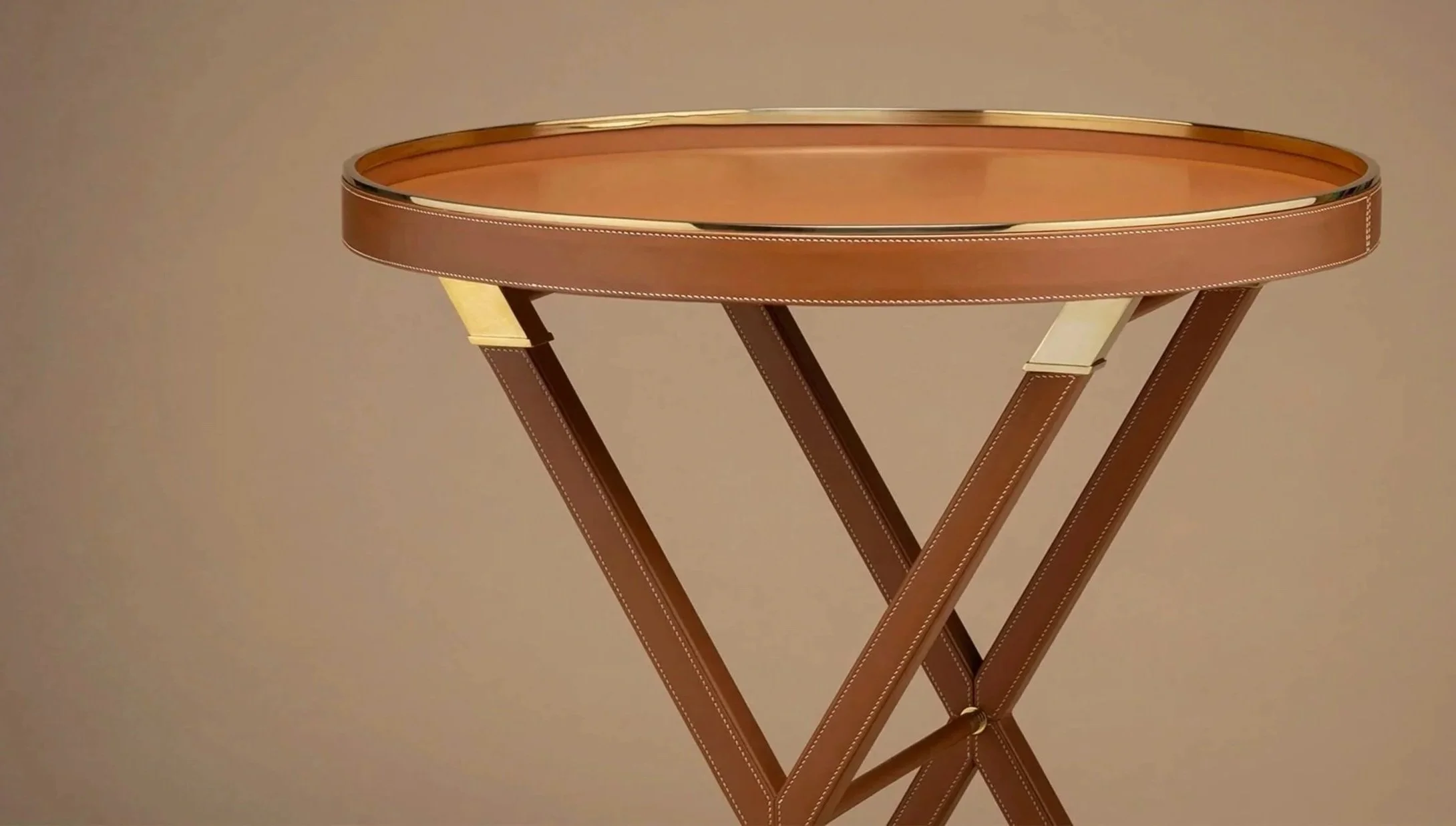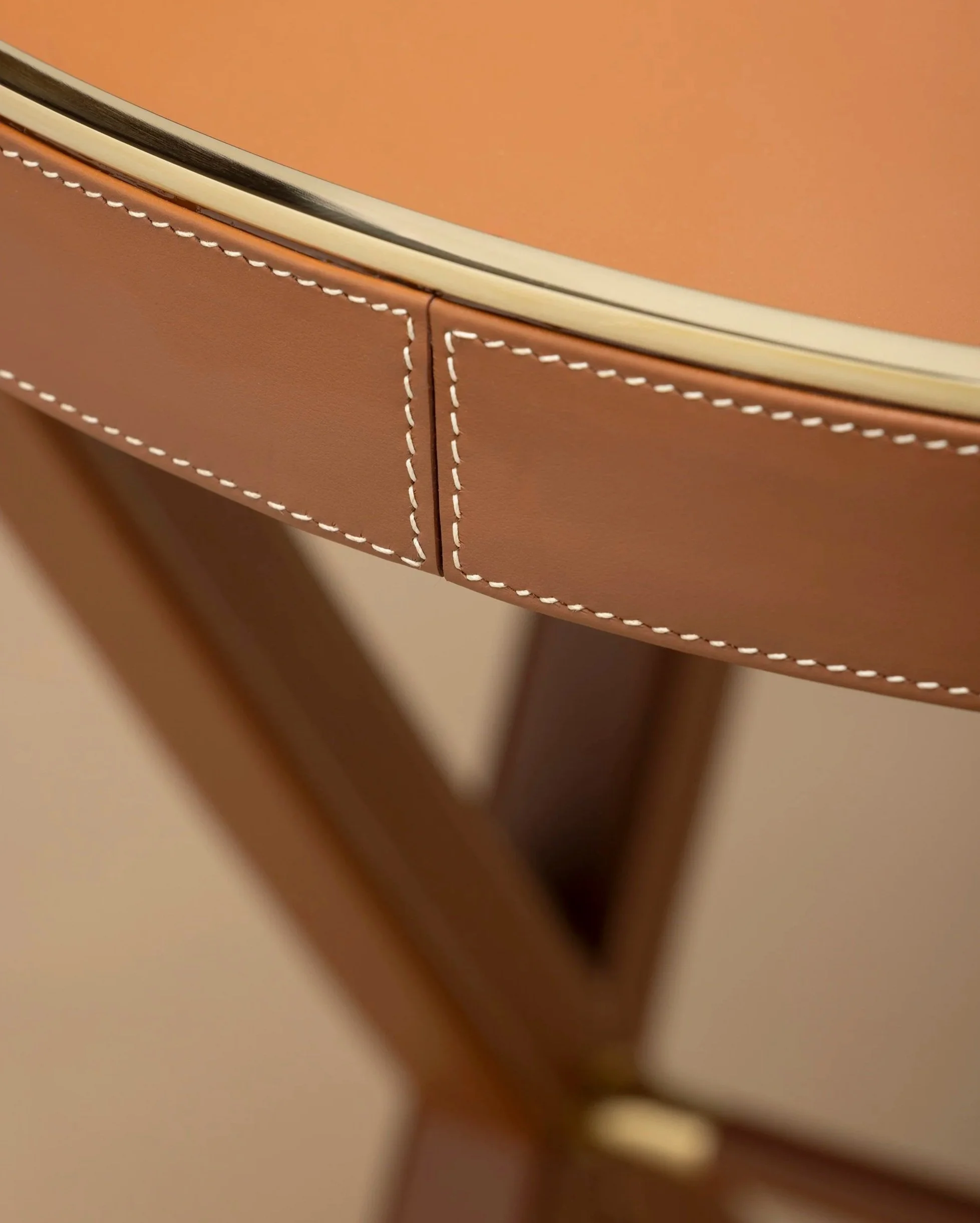 Upholstered entirely in leather with gold accents
