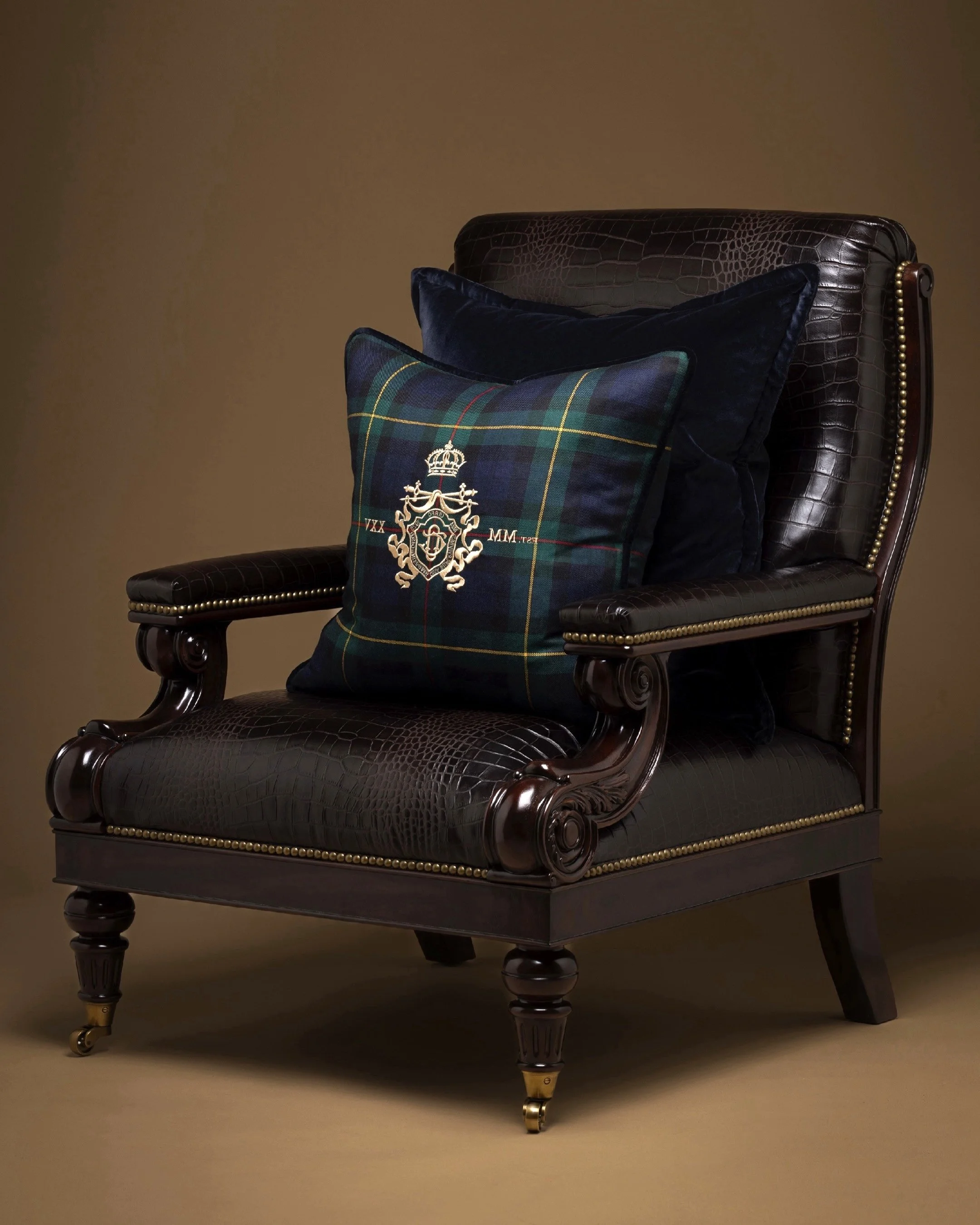 • Available in all lightweight tartans, Heritage Velvets and Country Tweed. Shown in Lochcarron Tartan: MacEwan Modern and Heritage Velvet: Ink, Racing Green and Ermine