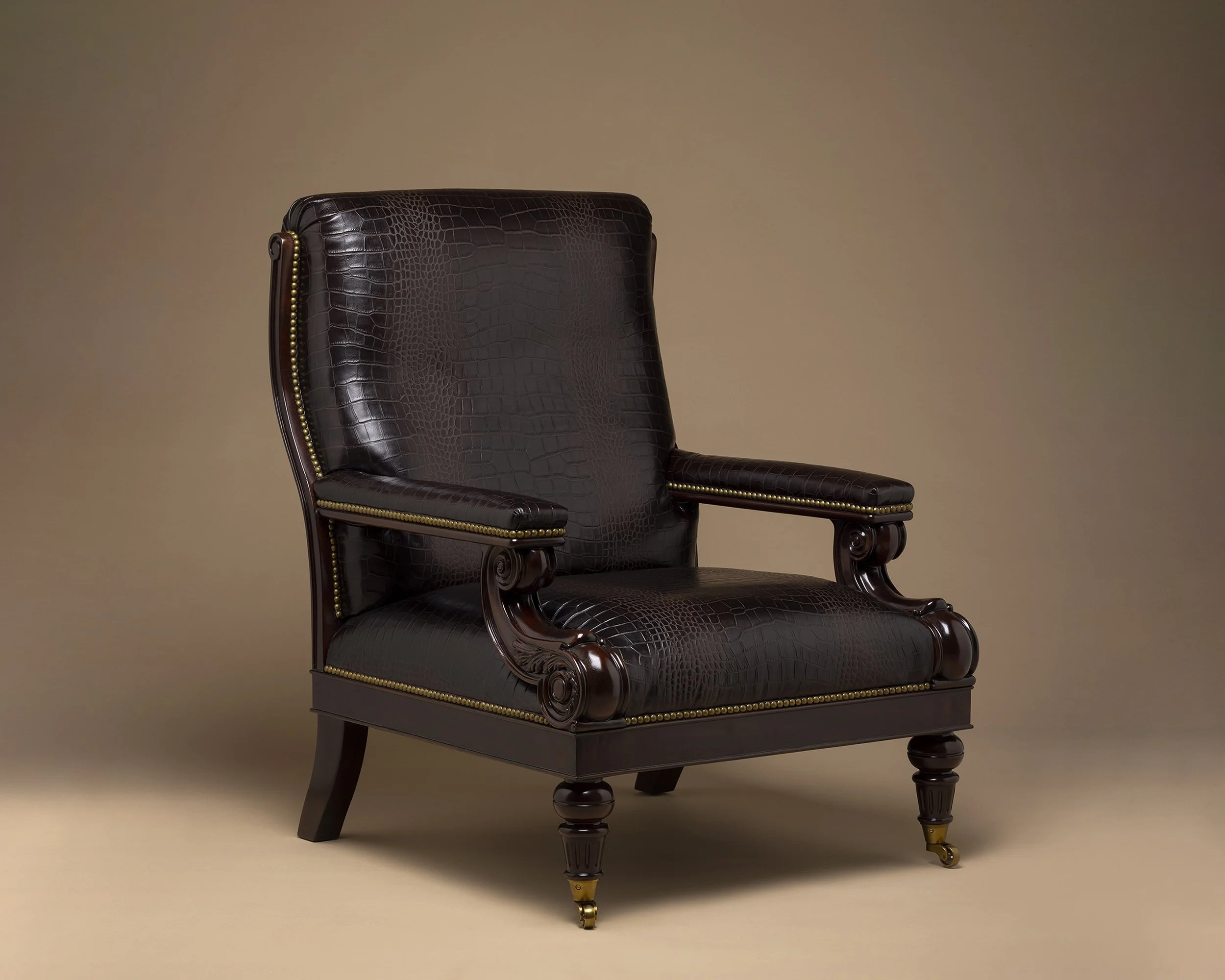 A commemorative occasional chair passed down through the generations, inspired by early Twentieth Century sporting events. The Twickenham Library chair features hand carved arms and an expertly crafted Sapele frame